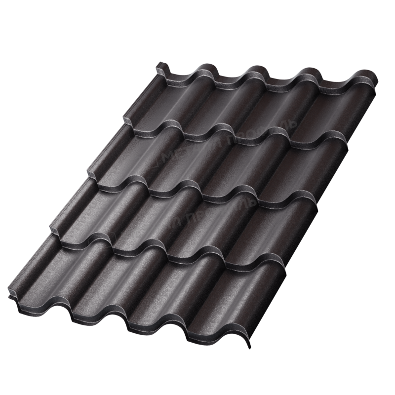 Металлочерепица Монтерроса-X от Металл-Профиль с толщиной 0,5 мм и покрытием VikingMP® E в цвете RAL 9005 (черный темный) представляет собой надежный кровельный материал, сочетающий эстетику натуральной черепицы с прочностью металла. Это идеальное решение для современных крыш, обеспечивающее долговечность и стильный внешний вид. Материал устойчив к атмосферным воздействиям, прост в монтаже и подходит для различных климатических условий.